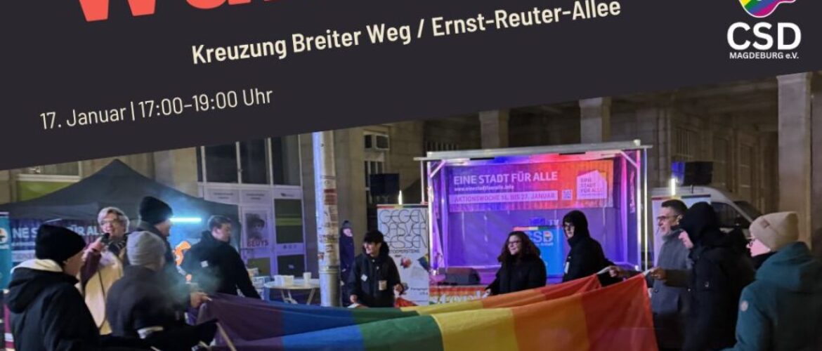 Alle Magdeburger*innen sind eingeladen, an der Aktion teilzunehmen, sich zu informieren, mitzudiskutieren und Haltung zu zeigen.