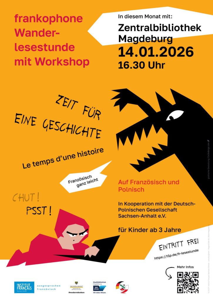 Kinder ab 3 Jahre und ihre Eltern sind zu einer besonderen Ausgabe der Wanderlesestunde „Zeit für eine Geschichte …“ eingeladen. Die Lesung findet zweisprachig auf Französisch und Polnisch statt. Im Mittelpunkt steht das bekannte Kinderbuch „Der Regenbogenfisch “ von Marcus Pfister, auf Polnisch „Tęczowa rybka“ und auf Französisch „Arc-en-ciel, le plus beau poisson des océans“. Mit seinen glitzernden Schuppen erzählt der Regenbogenfisch eine berührende Geschichte über Freundschaft, Teilen und Zusammenhalt.